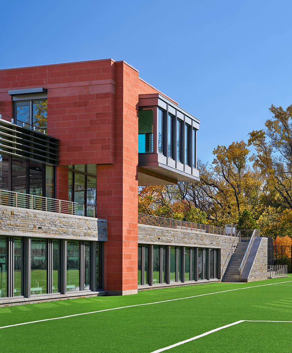 While the team explored a geothermal heat transfer system during the design phase, the school opted out for several reasons, including an imbalance in seasonal loads that would have been imparted to the earth. Nevertheless, the project delivered notable reductions in energy consumption and is targeting LEED Gold certification. Specific zoning approval requirements for limited visible rooftop equipment required the use of strategically placed heating and cooling plants.